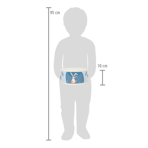 S tímto dětským bubnem budou dobře vybaveni všichni mladí, začínající bubeníci, protože spolu s oblíbeným zajícem má co nabídnout uším publika! Bavlněný pásek bubnu lze nastavit na libovolnou délku pomocí kovové přezky. Paličky jsou opatřeny zvukově tlumicími kryty, aby to v dětském pokoji nebylo příliš hlučné. Díky kombinaci přírodního dřeva a moderních kontrastních barev je to absolutní hit pro mladé hudebníky! Tento dětský bubínek hravě trénuje smysl pro rytmus a rytmiku a také koordinaci ruka-oko. Je ideální pro ranou hudební výchovu! Hlavní vlastnosti: Rozvíjí jemnou motoriku a kreativituHravý úvod do světa zvuku a rytmuNastavitelný a odjímatelný pásek bubánkuPaličky opatřeny tlumícími kryty