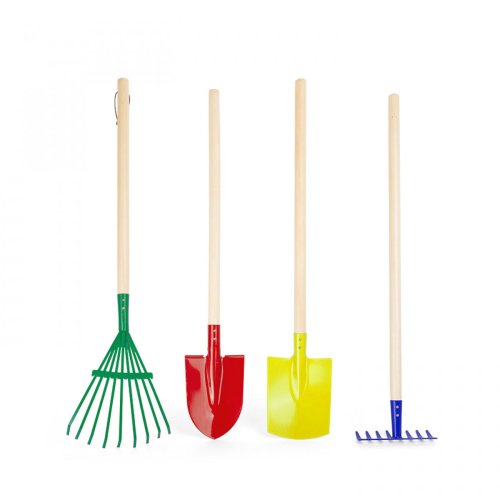 Zima je u konce! Je nejvyšší čas, aby se záhony připravily na jaro - nebo možná vytvoříte i několik nových? Pevná sada zahradního nářadí obsahuje dvoje hrábě, lopatu a rýč. Ve svých jasných barvách je vhodná pro jakýkoliv úkol na zahradě. Živé barvy a realistický design usnadňují mladým zahradníkům napodobovat dospělé a učit se od nich. Po dokončení práce mohou být nástroje řádně zavěšeny za provazové konce. Toto zahradnické nářadí potřebuje už jen květiny a půdu!