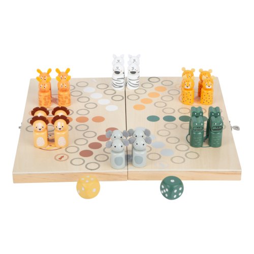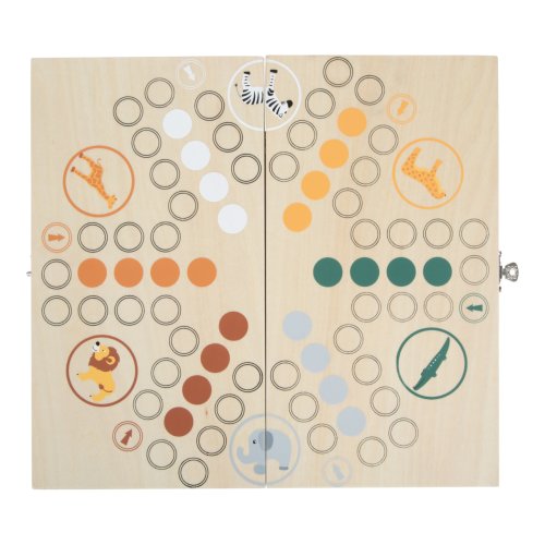 Skvělá zábava až pro 6 hráčů každého věku! V této klasické hře vyrobené ze dřeva musíte dostat svá zvířátka ze savany do domečku. Zebra, žirafa, krokodýl, slon, leopard a lev vypadají skoro jako praví. Tyto figurky jsou vhodné pro děti, jsou dřevěné a mají plyšové prvky. Herní deska je praktická, po složení se z ní opět stane úložný box. Dvě herní kostky vám ukáží, o kolik polí se můžete posunout. Klasická stolní hra v trendy designu, která děti naučí počítat, poznávat barvy a zvířata. Děti se také naučí prohrávat. Ideální také na cesty. Hlavní vlastnosti: pro 2–6 hráčůherní deska, 24 figurek a 2 kostkypraktické balení