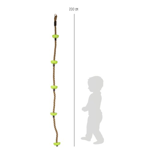 Kdo vyšplhá až po nejvyšší stupínek? Lezecké lano se neztratí na žádné zahradě! Jeho prostřednictvím mohou Vaše malé opičky cvičit a poměřovat svou sílu i hbitost. Nylonové lano je velmi poddajné, a lze je proto snadno uklidit. Na konci je opatřeno kovovým kroužkem k zavěšení. Stupínky z nezávadného plastu v atraktivní barvě pomáhají dětem začít se šplhem. Díky použitým materiálům může pomůcka nabídnout vysokou odolnost a životnost. Hlavní vlastnosti:délka 200 cm, 5 stupínkůnosnost 100 kgodolné provedení