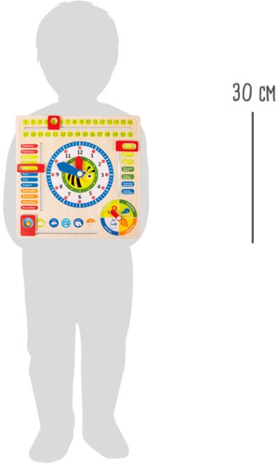 Díky tomuto didaktickému kalendáři mohou děti hravou formou poznávat roční období, dny, týdny, měsíce a čas. Podporují děti v učení se času ve 12 a 24 hodinovém formátu. Při nastavování ručiček jsou současně trénovány motorické dovednosti. A protože jsou všechny termíny uvedeny v angličtině, je snadné učit se nový jazyk. Hlavní vlastnosti: procvičuje motorické schopnostiučí poznávat čas a datumpomáhá učit anglický jazyk