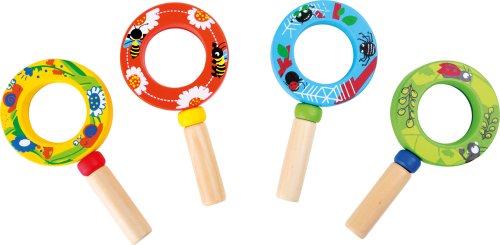 Kdo tu vidí nejlépe? V každém případě vlastník této velké dřevěné lupy. Barevné zvířecí motivy dávají představu o tom, co může být lupou pozorováno a zvětšeno. Mravenci, pavouci a šneci se budou dětem prezentovat v gigantických rozměrech. Tím se ale nenechte vyděsit..! Hlavní vlastnosti: užitečná vzdělávací hračkaskvělý způsob, jak rozvíjet pozorovací schopnostivyrobeno z vysoce kvalitních materiálů