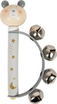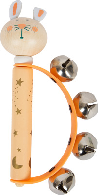 Tamburína pro miminka a kojence se čtyřmi malými zvonečky na pružném plastovém oblouku naučí rytmus! Díky hladkému pocitu z dřevěné rukojeti a malým rozměrům lze tuto dětskou tamburínu snadno uchopit malými ručičkami. Přírodní dřevo v kombinaci s láskyplným designem, roztomilými plstěnými prvky a jemnými pastelovými barvami dělají z tohoto dětského nástroje absolutní poutač a ideální drobný dárek. Podporuje také rozvoj akustického vnímání. Ideální pro kojence a pro ranou hudební výchovu, učení se prvním rytmům nebo rytmické doprovodné hraní na jiné hudební nástroje. Nejedná se o hudební nástroj, ale o hračku. Hlavní vlastnosti: čtyři zvonky na pružném plastovém obloukuhladká dřevěná rukojeť ve velikosti pro dětský úchopvhodné pro ranou hudební výchovu