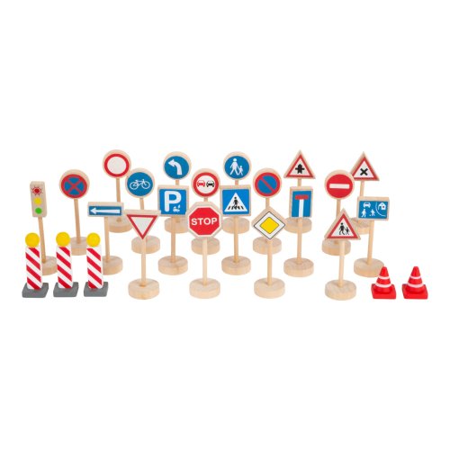 Jezděte bezpečně! Tyto mezinárodní dopravní značky jsou vyrobeny ze dřeva. Budou skvělým doplňkem pro dopravní koberec či vláčkodráhu Vašeho dítka. Hračka je nejen krásná, ale zároveň děti naučí něčemu novému – důležitosti dopravních pravidel. Graficky sladěné s Prémiovým 7 dílným parkovištěm (11676), jsou pro něj dokonalým doplňkem. Hlavní vlastnosti: 25 značekmezinárodní piktogramy