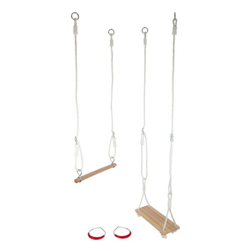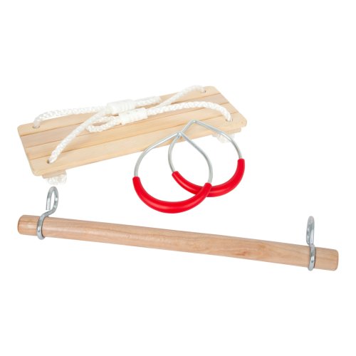 Zábava s houpačkami x3! S tímto setem houpaček, který se skládá z houpačky jednoduché, visuté hrazdy a kovových gymnastických kruhů s plastovými madly, děti zapomenou na význam slova nuda. V balení dvě sady lan, která jsou odolná proti přírodním vlivům, jsou nastavitelná díky lanové osmě. Pro každou houpačku tak můžete nastavit optimální výšku! Díky dvěma sadám lan můžete používat dvě houpačky zároveň. Jednoduché zavěšení. Praktická a multifunkční hračka do domu i na zahradu. Hlavní vlasnosti 4 nastavitelná lana3 typy houpačekGymnastické kruhy mají plastová madla