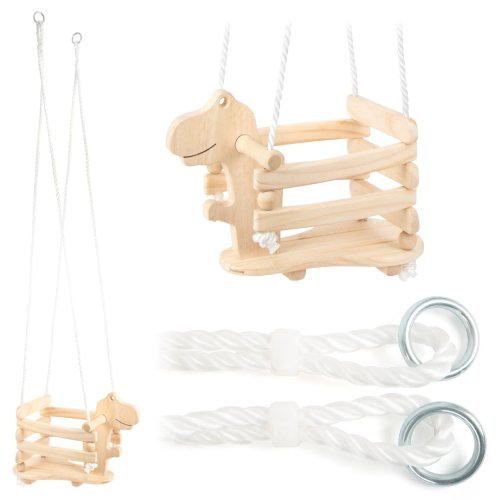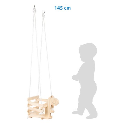 Tato houpačka pro batolata z neošetřeného masivního dřeva potěší malé fanoušky dinosaurů. Flexibilní zabezpečení dítěte ze všech stran, které sahá až do výšky hrudníku, stejně jako dvě rukojeti, zajišťují mladým „dinosaurovým jezdcům“ velikou podporu, jistotu a bezpečnost. Ergonomický tvar sedáku také dává dětským nohám dostatečnou volnost pro větší houpací pohodlí. S robustními lany odolnými proti povětrnostním vlivům a kovovými kroužky pro rychlé zavěšení, lze použít jak venku, tak i uvnitř. Hlavní vlastnosti: vyrobena z masivního dřevaergonomický tvar sedákuzodpovědnost za kvalitu a bezpečnost