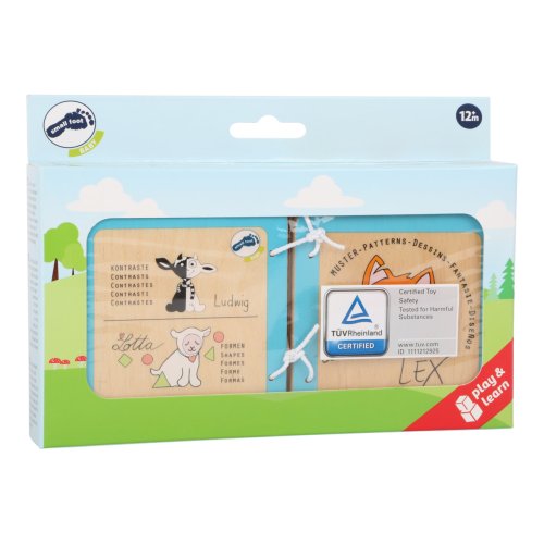 Prozkoumejte první jednoduché vzory společně s roztomilým lišákem Lexem! Tato dřevěná knížka podporuje malé děti při jejich prvních smyslových vjemech. Tato kniha je vyrobena z robustního dřeva a je odolná vůči slinám a snadno se čistí a udržuje. Hlavní vlastnosti: rozvíjí smysly a motoriku dětípodporuje dětskou představivost