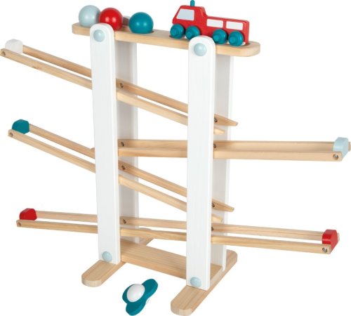 Nenechte si ujít rychlou kuličkovou dráhu ve formátu XL s extra velkými kuličkami! Hodiny zábavy jsou zaručeny pokud necháte koulet 3 masivní dřevěné kuličky po čtyřech rampách. Tato extra velká, robustní dráha vyrobená z kvalitního masivního dřeva nabízí nejen spoustu zábavy, ale také podporuje rozvoj motoriky a koordinaci ruka-oko. Součásti balení jsou 3 barevné kuličky, hasičské vozidlo a také otočné kuličkové kolo. Jednotlivé kuličky a také autíčko předvádějí fascinující a zábavnou show na své cestě z úrovně do úrovně na kaskádové dráze. Přírodní dřevo v kombinaci s barevnými detaily dělají dráhu moderní a nadčasovou, jenž se hodí do každého dětského pokojíčku. S touto kuličkovou dráhou už nebude žádná nuda! Hlavní vlastnosti: balení obsahuje: 1x dráha, 1x hasičský vůz, 3x barevná kulička, 1x kuličkové kolopřírodní dřevo s barevnými detailyrozvíjí motoriku a koordinaci ruka-oko