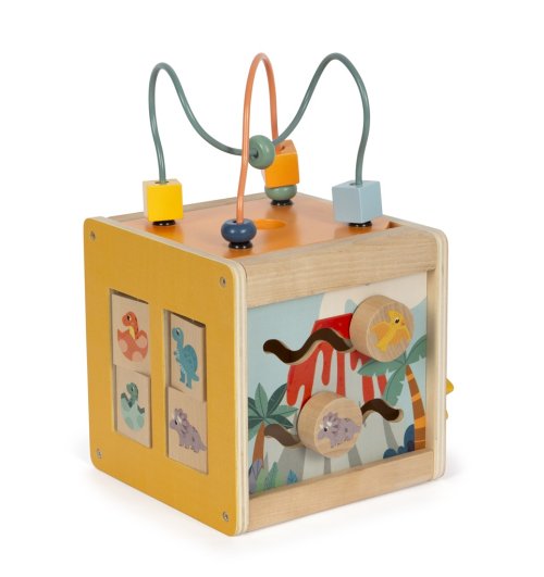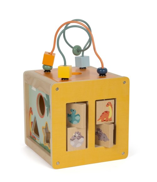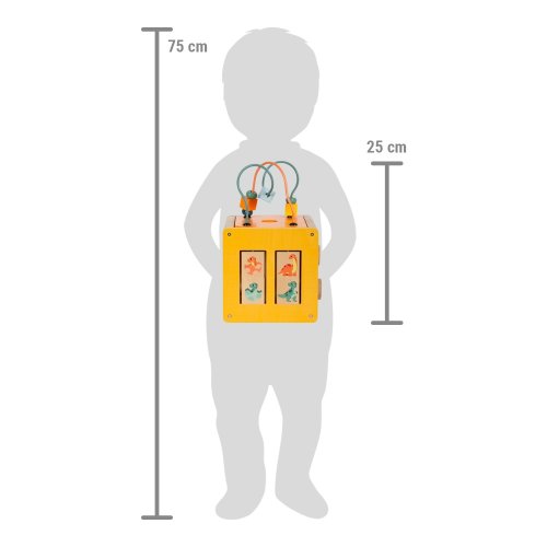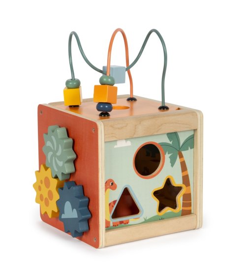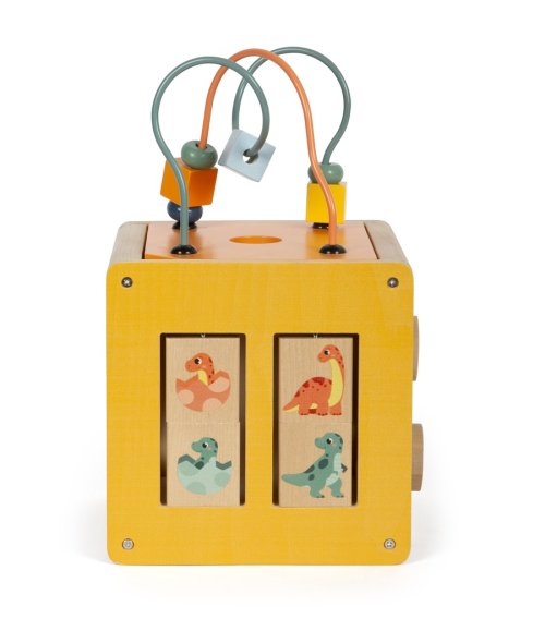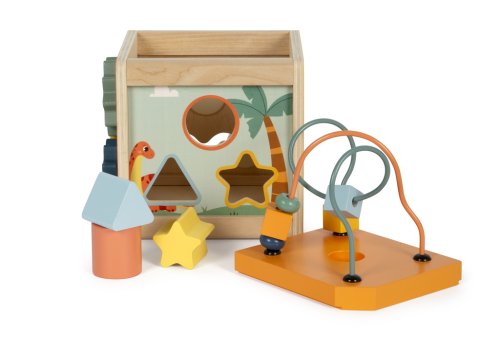 Pokud nemáte v dětském pokojíčku dostatek prostoru, je tato multifunkční motorická kostka ideální. Odnímatelné víko lze otočit, korálkový labyrint schovat do kostky a ušetřit tak místo. Tato hračka nabízí nepřeberné množství možností zábavy: korálkový labyrint, ozubená kolečka, vkládání tvarů, otočné kostičky s obrázky dinosaurů a další. Díky příjemným barvám, roztomilým dinosaurům i dřevěnému materiálu se tato zábavná a naučná kostka stane jistě oblíbenou hračkou Vašich dětí, ale také pěkným doplňkem do dětského pokojíčku. S hračkami z produktové řady "Dino" jsou tématem fascinující prehistoričtí tvorové, kteří upoutají pozornost lidí všech věkových kategorií. Tyto dřevěné hračky podporují rozvoj motorických dovedností, inspirují dětskou kreativitu a představivost a povzbuzují děti, aby se dozvěděly více o přírodě a historii těchto pravěkých obrů. Hlavní vlastnosti: odnímatelná vrchní část kostky s korálkovým labyrintemkompaktní rozměryrozvíjí koordinaci ruka-okorozvíjí zručnost a jemnou motorikutrénuje vnímání tvarů a barevstimuluje dětskou kreativitu Značka a certifikát FSC® (Forest Stewardship Council) zaručuje, že dřevo, ze kterého byl produkt vyroben, nebylo vytěženo nelegálně a pochází z lesů obhospodařovaných šetrným či přírodě blízkým způsobem, ve kterém jsou dodržovány přísné environmentální a sociální požadavky. Značka FSC® na výrobku znamená, že svým nákupem pomáháte chránit lesy a podporujete šetrné, odpovědné či přírodě blízké hospodaření, díky kterému jsou naše lesy stabilnější, zdravější, mají přirozenou druhovou skladbu a lépe odolávají negativním následkům klimatických změn.