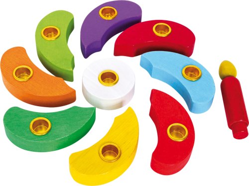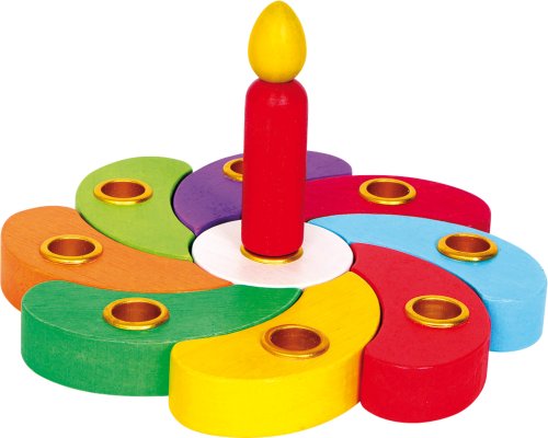 Barevné dekorace na narozeninový stůl, květina s 10 díly, z jemně leštěného masivního bukového dřeva! Kovové držáky ve středu květů a svíčka vyvolá na dětských tvářích šťastný úsměv! Hlavní vlastnosti: provedení z masivního dřeva