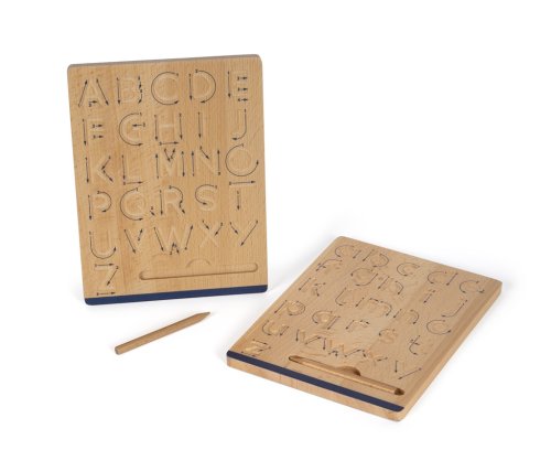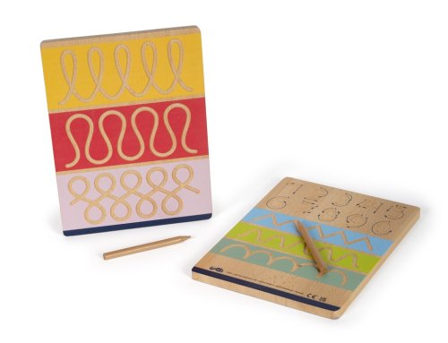 Blíží se škola a Vy máte pocit, že psaní by mohlo být pro Vaše dítě problém? S touto sadou desek pro trénink psaní, vyrobenou z kvalitního FSC® certifikovaného dřeva, se Vaše dítě naučí uchopit psací náčiní a osvojí si základy psaní, a to zábavnou formou a bez použití papíru. Na dvou dřevěných oboustranným deskách najdete šablony s drážkami s různými tvary, číslicemi a písmeny. Přiloženou tužkou bez tuhy projíždí dítě drážkami, šipkami naznačeným směrem a tak se učí, jak číslici či písmeno správně napsat. Součástí je integrovaný zásobník na tužky, aby byly vždy připraveny k použití. Hlavní vlastnosti: vyrobeno ze 100% FSC® dřeva2 oboustranné desky a 2 tužky bez tuhytrénuje jemnou motoriku rukouvhodné pro předškolákynácvik psaní zábavnou formou Značka a certifikát FSC® (Forest Stewardship Council) zaručuje, že dřevo, ze kterého byl produkt vyroben, nebylo vytěženo nelegálně a pochází z lesů obhospodařovaných šetrným či přírodě blízkým způsobem, ve kterém jsou dodržovány přísné environmentální a sociální požadavky. Značka FSC® na výrobku znamená, že svým nákupem pomáháte chránit lesy a podporujete šetrné, odpovědné či přírodě blízké hospodaření, díky kterému jsou naše lesy stabilnější, zdravější, mají přirozenou druhovou skladbu a lépe odolávají negativním následkům klimatických změn.