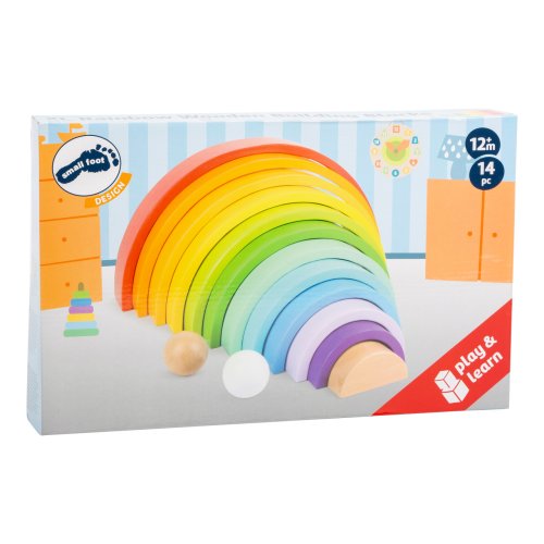 Barevná zábava zaručena! Duha včetně 2 dřevěných kuliček je vyrobena z odolného dřeva v pestrých barvách. Složená duha patří na každou polici v pokojíčku, má mnoho variací skládání a hraní. Z duhy lze vytvořit také dráhy pro kuličky, vysoká věž nebo houpačka pro plyšáky. Je všestranná a podporuje tvořivost dětí. Která barva je nejkrásnější? Hlavní vlastnosti: Rozvíjí motoriku dítětePoužívá se v MontessoriKvalitní zpracování dřeva