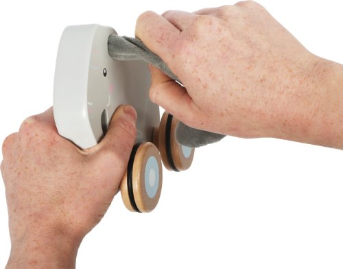 A jedeme! Roztomilý slon na provázku s velkýma, měkkýma ušima vyrobený z vysoce kvalitního pevného dřeva se jistě stane nezapomenutelným kamarádem každého dítka při jeho prvních samostatných krůčcích. Dá se snadno táhnout na provázku a povzbuzuje malé děti k lezení a chůzi. Užijí si tak při procházkách spoustu zábavy. Pogumovaná kolečka napomáhají plynulé a tiché jízdě. Hračka podporuje rozvoj motorických dovedností, pohyblivosti a smyslového vnímání. Šustivá ouška lze snadno odebrat a vyprat. Hlavní vlastnosti: robustní provedeníodnímatelné měkké ušise šňůrou dlouhou 60 cmpodporuje rovnováhu a koordinaci pohybůrozvíjí motorické dovednostis tichými pogumovanými kolečkyinspiruje dětskou kreativitu a představivost