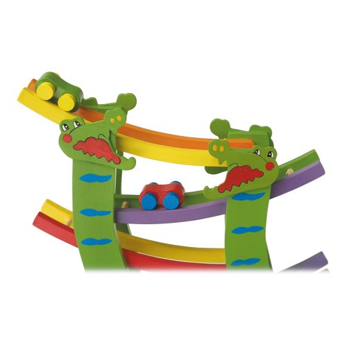 Pojďme si hrát! Na této husté a designové závodní dráze si užijete mnoho zábavy. Pestré barvy a kousající hlavy krokodýla vás lákají k závodu. Položte autíčka na start a nechte je sjet až dolů, které auto vyhraje? Rychlá zábava pro všechny milovníky krokodýlů! Hlavní vlastnosti: obsahuje 4 autíčkaveselý design s motivem krokodýla