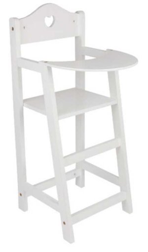Tato jednoduchá dřevěná jídelní židlička rozbuší srdce všech panenek. Natřená bílou barvou a zdobená malým výřezem srdce je stylovým doplňkem, dětského pokojíčku. Díky svému neokázalému stylu se tato jídelní židlička ideálně hodí do dětských pokojů, ale také do obývacích pokojů. Hlavní vlastnosti: podporuje aktivní hraní a rozvoj sociálních dovedností stabilní konstrukce, kvalitní zpracovánívhodná i do školek