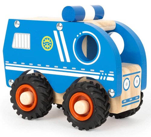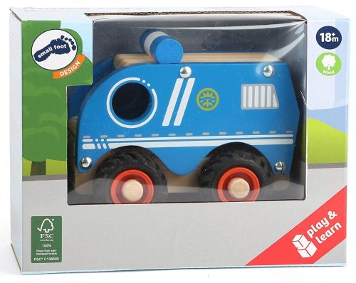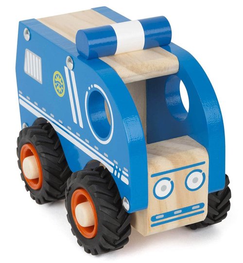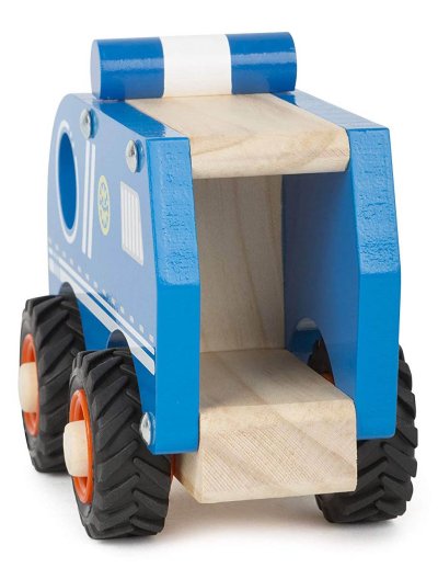 Dřevěné autíčko je vyrobeno z tvrdého masivního dřeva. Policejní vozidlo má gumová kolečka.