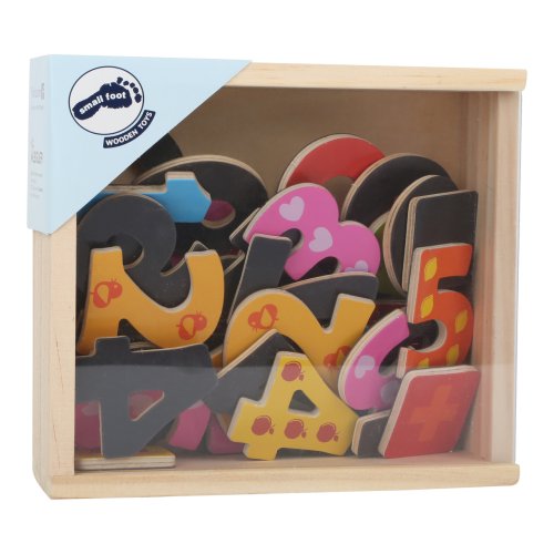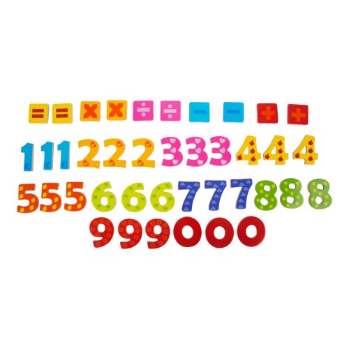 Sada obsahuje 40 barevně malovaných dílků s čísly od 0 do 9 na magnetickém laminovaném dřevě. Tyto dílky lze uložit do dřevěné krabičky s průhledným víkem, kde se zaručeně neztratí. Děti mohou sestavit a vyřešit své první matematické rovnice a rozvíjet tak své logické myšlení. Veselá čísla můžete připevnit na mnohá místa jako např. ledničku, jelikož mají magnetickou funkci. Hlavní vlastnosti: praktické balení - dřevěná krabička s průhledným víkemdidaktická pomůcka k učení počítáníprodukt s magnetickou funkcípestrobarevné provedení