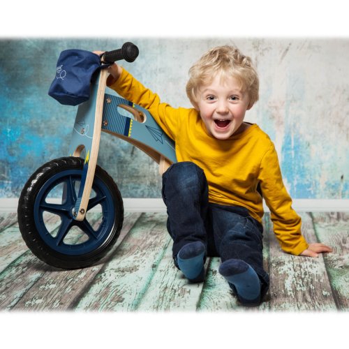 Rychlý jako stíhačka! S designem v odstínech modré a potiskem papírového letadla toto odrážedlo nadchne spíše chlapce. Sedadlo lze nastavit na tři rozdílné výšky, takže odrážedlo poroste s dětmi. Hračky si děti mohou vložit do oddělitelného košíku. Skvělé je, že když se děti unaví, mohou rodiče nést kolo přes rameno díky nastavitelnému popruhu. Pro přidanou bezpečnost je na řídítkách tlumič řízení. Zvonek, gumové rukojeti, nezničitelné EVA pneumatiky a měkké sedadlo zaručují zábavnou a bezpečnou jízdu. Balanční odrážedlo tránuje motoriku, rovnováhu a koordinaci a připravuje děti na jízdu opravdového kola. Hlavní vlastnosti: procvičují motorické dovednosti, rovnováhu a koordinacipřipravují děti na jízdu kolemlehké provedenísnadná přenositelnost díky popruhuvýškově nastavitelné sedadlo - 3 úrovně