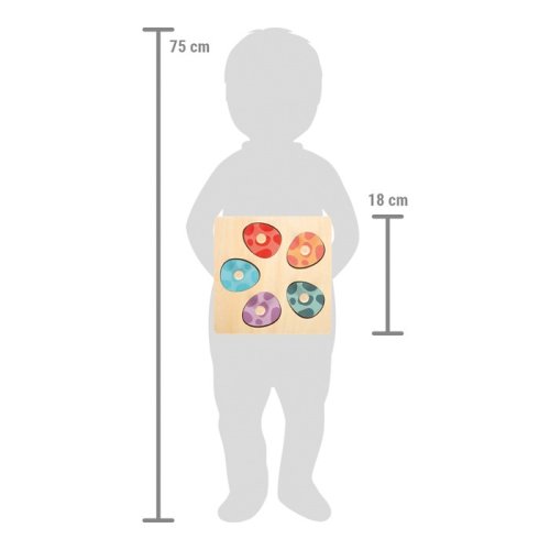 Toto robustní vkládací puzzle v pestrých barvách s motivem dinosaurů je vyrobeno ze 100% certifikovaného FSC® dřeva. Skládá se z 6 dílků ve tvaru dinosauřích vajec, z nichž každé skrývá dřevěnou figurku dinosaura v odpovídajícím barevném provedení. Děti mohou puzzle využít jako puzzle nebo jako pexeso. Bude zábavnější puzzle poskládat podle barev a vzorů a schovat vždy dinosaura pod vajíčko odpovídající barvy nebo dinosaury a vajíčka promíchat a hledat dvojici vejce a dinosaura, která k sobě patří? Dílky puzzle jsou opatřeny praktickými dřevěnými úchyty, které jsou ideální pro malé dětské ručičky. Uchopení a vkládání dílků dřevěné skládačky do předem vyražených tvarů hravou formou podporuje jemnou motoriku. Děti se učí trpělivosti a vytrvalosti a zároveň trénují svou koncentraci a koordinaci ruka-oko. Procvičují také paměť, učí se rozpoznávat barvy a vzory a tím je stimulován jejich kognitivní vývoj. Tématem hraček produktové řady Dino jsou dinosauři, fascinující prehistoričtí tvorové, kteří upoutají pozornost lidí všech věkových kategorií. Tyto dřevěné hračky podporují rozvoj motorických dovedností, inspirují dětskou kreativitu a představivost a povzbuzují děti, aby se dozvěděly více o přírodě a historii těchto pravěkých obrů. Hlavní vlastnosti: 6 dinosauřích vajec a 6 figurek dinosaurů dřevěné úchytypuzzle a pexeso v jednompodporuje jemnou motoriku, trpělivost, koncentraci a vytrvalost rozvíjí koordinaci ruka-okotrénuje vnímání tvarů a barevstimuluje dětskou kreativitu a kognitivní vývojideální doplněk k dalším hračkám z řady Dino Značka a certifikát FSC® (Forest Stewardship Council) zaručuje, že dřevo, ze kterého byl produkt vyroben, nebylo vytěženo nelegálně a pochází z lesů obhospodařovaných šetrným či přírodě blízkým způsobem, ve kterém jsou dodržovány přísné environmentální a sociální požadavky. Značka FSC® na výrobku znamená, že svým nákupem pomáháte chránit lesy a podporujete šetrné, odpovědné či přírodě blízké hospodaření, díky kterému jsou naše lesy stabilnější, zdravější, mají přirozenou druhovou skladbu a lépe odolávají negativním následkům klimatických změn.