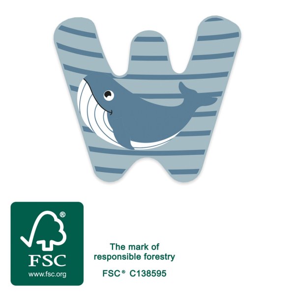 Skládejte věty s trendy písmeny z nové ABC zvířecí řady! Jsou perfektním doplňkem do každého dětského pokojíku. Zaoblené hrany zajišťují příjemný dotyk a veselý, pastelový design dělá z každého písmenka ideální dekoraci. Hlavní vlastnosti: dekorace do dětského pokojekvalitní zpracování ze 100% certifikovaného FSC dřevapastelový design s velrybouzaoblené hrany