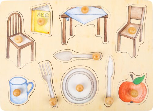 Zastavte se na chvíli! Víte, co mají společného stůl, židle, jablíčko a příbor? Tyto a další každodenní objekty jsou hrdinové dnešního dobrodružství, které čeká na vaše nejmenší! Small Foot Dřevěné puzzle Každodenní objekty přináší do vašeho domova vzrušující svět objevů, který rozzáří oči vašich dětí. Představte si, jak vaše dítě uchopí pevný dřevěný knoflíček a s úsměvem přiřadí jablíčko právě do jeho tvaru na puzzle. Tyto láskyplně ilustrované dřevěné dílky nejenže zvou k objevování, ale jsou navrženy tak, aby perfektně padly do malých rukou. Small Foot Dřevěné puzzle nejen podněcují zvědavost a učí rozpoznávat každodenní předměty, ale jsou i skvělým pomocníkem pro rozvoj jemné motoriky a trpělivosti. Máte chuť vidět, jak vaše dítě rozkvétá při každém správně umístěném dílku? Jak se raduje z každého malého vítězství? Small Foot Dřevěné puzzle jsou více než jen hračkou; jsou cestou k učení se skrze hru, k posilování sebedůvěry a k rozvoji důležitých životních dovedností. Jsou pečlivě vyrobeny z kvalitního dřeva, aby vydržely nesčetné hodiny zábavy a učení. Nenechte si ujít příležitost obohatit dětský svět o tento krásný a edukativní dárek. Sledujte, jak se vaše dítě učí a směje s každým novým úspěchem. Hlavní vlastnosti: obsahuje 10 vkládacích dílů - stůl, židle, kniha, jablko, hrníček, talíř a příborprocvičuje jemnou motoriku a trpělivostvhodné od 1 rokubaleno ve fóliovém obalu