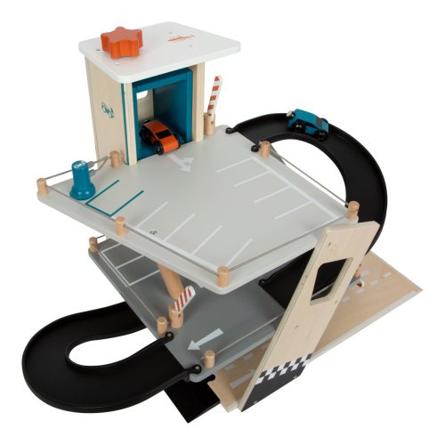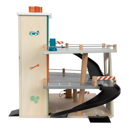 Video je pouze ilustrační, zobrazuje příbuzný produkt. Parkujte, tankujte, myjte nebo opravujte, a to vše s jednou garáží! Nabízí tři bohatě vybavená podlaží propojená atraktivním funkčním výtahem a zábavnými, na sebe plynule navazujícími rampami. Její součástí je dvojice autíček, která mohou při fantastických hrách využít pumpy, nabíjecí stanice, zvedací rampy, nebo myčky s realistickými kartáči. Každá z úrovní je navíc opatřena mechanickou závorou pro dokonale poutavé zážitky. Patra jsou opatřena gumovým hrazením, které dodávají jízdě autíček na dynamice a brání jejich vypadnutí. Garáž je podrobně zdobena mnoha barevnými ikonami a značením, které do her vnese i poučení. Je vyrobena ze silné, pevné a odolné dřevěné překližky s doplňky z masivního dřeva a nezávadného plastu. Výrobek vyžaduje montáž, dodáváno s obrázkovým návodem k sestavení. Hlavní vlastnosti:garáž a 2 autíčka3 podlaží propojená funkčním výtahem a 2 rampamipumpa, nabíjecí stanice, zvedací rampa, myčka a 3 závorykompatibilní s vláčkodráhami a souvisejícím příslušenstvím jiných výrobcůbohatě zdobeno jednoduchými ikonami a značenímpevné a odolné dřevěné provedení