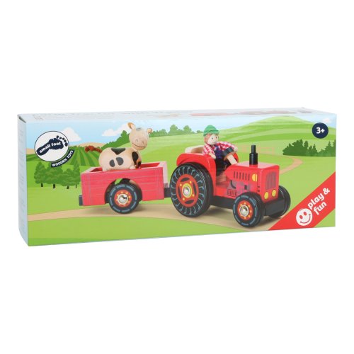 Farmář a jeho kráva se vydávají traktorem na nedaleké pole. Jelikož figurky hýbou rukama i nohama, bude rozehrání poutavého příběhu jednoduché. Pogumovaná kola traktoru zajišťují tichou jízdu po podlaze. Hlavní vlastnosti: odnímatelná vlečkapogumované pneumatiky pro tichou jízdupomáhá s rozvojem představivosti, řeči a sociálních dovedností
