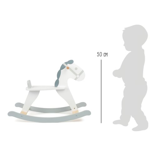 Klasická hračka, která by neměla chybět v žádném dětském pokoji. Přivětivými tvary láká děti k houpavým projižďkám, kterými mohou zesílit a zdokonalovat koordinaci pohybu nebo smysl pro rovnováhu. Pro větší bezpečnost a jisté sezení je sedadlo koníka opatřeno pevnou opěrkou. Díky minimalistickému skandinávskému designu kombinujícímu bílou a šedou barvu vkusně doplní moderní interiér. Konstrukce ze silné překližky a masivního dřeva zajišťuje dlouhotrvající zábavu. Výrobek vyžaduje montáž, dodáváno s obrázkovým návodem k sestavení. Hlavní vlastnosti: moderní designsedadlo s opěrkouodolné dřevěné provedení