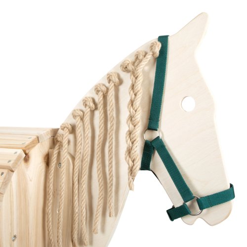 Malí i větší jezdci se mohou hravou formou seznámit se základy péče i jezdectví. Hříva a ocas ze sisalu vybízí děti k úpravě, zaplétání a zkrášlování. Díky zabudovanému stupínku bude nasedání hračka! Šikmé koníkovy nohy slibují větší stabilitu a bezpečnost. V břiše má kůň velký úložný prostor! Jako dělaný na uložení kartáče na hřebelcování či ohlávky. Ideální na zahradu nebo do dětského pokoje! Produkt je neošetřený – lze natřít konzervačním lakem dle přání a potřeb majitele. Rozměr koňského hřbetu byl navržen pro velikost sedla, jenž se prodává samostatně. Hlavní vlastnosti: součástí balení ohlávkasisalový ocas a hřívaneošetřené, odolné dřevoúložný prostor v břišeseznamování s povinnostmi péče zábavnou formou