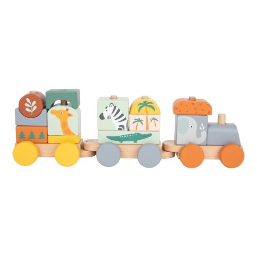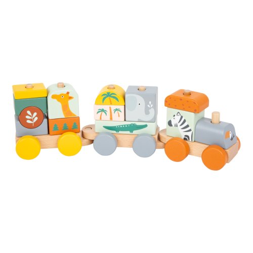 Složte jej a vyražte ze stanice! Tento dřevěný vláček v trendy barvách se rozjede až po nastoupení všech pasažérů – zebry, slona, žirafy a krokodýla. Vláček s mnoha detaily je zároveň nasazovací hračkou, která dává dětem volnost při skládání – každá kostka pasuje na více míst. Příští zastávka: Safari! Hlavní vlastnosti: ilustrováno v pastelových barváchobsahuje 1 lokomotivu, 2 vagóny a 13 dílůtrénuje motoriku a představivost