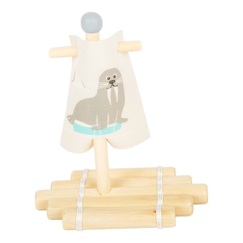 Dřevěný vor pro všechny malé námořníky. Hračka je vyrobena z kvalitního dřeva a na plachtě má vor vyobrazený obrázek mrože. Rozměry voru jsou cca 16 x 9 x 20 cm. Vhodné pro děti od 2 let.