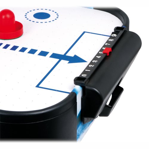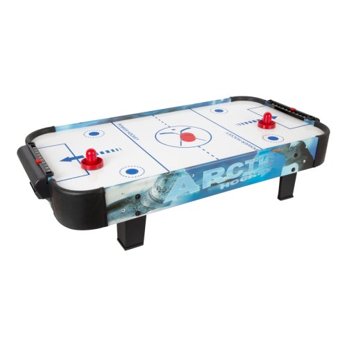 Populární vzdušný hokej prověří postřeh a hbitost dětí. Díky vzduchu vháněnému zespodu vestavěným ventilátorem může puk hladce, ale hlavně bleskurychle klouzat po hrací ploše. Hráči mají k dispozici kuželové pálky, kterými se snaží vstřelit puk do soupeřovy branky. Pálky jsou na spodních stranách opatřeny plstí pro snadný a bezhlučný pohyb. Branka každého z hráčů je vybavena jednoduchým číselníkem k zaznamenávání průběhu zápasu. Hru lze díky její velikosti snadno uklidit, přenášet, nebo i vzít na cesty. Napájení je zajištěno adaptérem se standardní eurozástrčkou pro 220–240 V. Výrobek vyžaduje montáž, dodáváno s obrázkovým návodem k sestavení. Hlavní vlastnosti: rychlá, akční hra pro 2 hráčehrací stůl s napájecím adaptérem, 2 pálky a 2 pukyčíselníky pro záznam skóre