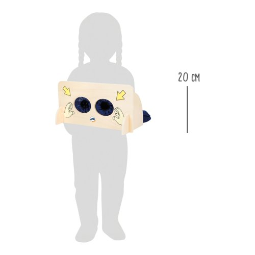 Různé předměty ukryjte do látkového pytlíku za dřevěnou stěnou. Pytlík je opatřen zipem, pro snadnější vkládání předmětů. Děti vloží ruce do textilních rukávů a podle hmatu se snaží rozpoznat, o jaký předmět se jedná. Hlavní vlastnosti: hra je vhodná také do školek nebo družinpomáhá rozvoji poznávacích a motorických dovedností