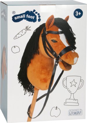 Připraven na velká jezdecká dobrodružství. Tento hnědý koník na tyči Hobby Horse je ideálním společníkem pro malé milovníky koní, kteří si chtějí hrát s fantazií a zároveň se aktivně hýbat. Inspirován klasickým koníkem na tyči, ale moderně zpracován – představuje aktivní zábavu při hobby horsingu, ať už při projížďce po zahradě, tréninku skoků v obýváku nebo na turnaji v parku. Koník má měkkou látkovou hlavu, hustou a snadno upravitelnou hřívu, pevnou tyč z masivního dřeva. Součástí je ohlávka, uzda a vodítko, které dodávají hře maximální autentičnost. Otevřená tlama umožňuje realistické nasazení udidla, jako u skutečného koně. Dřevěnou tyč lze jednoduše odšroubovat, což usnadňuje skladování i přepravu na další hobby horsingová dobrodružství.Tento všestranný jezdecký koník si již našel místo ve světě hobby horsingových soutěží i kreativních pohybových aktivit. Jako pohybová hračka je ideálním partnerem pro moderní sport Hobby Horsing a nadchne malé i velké jezdce. Hlavní vlastnosti: podporuje aktivní hraní a rozvíjí jemnou motorikupohybová hračka pro trendy sport Hobby horsingkrátká a pevná jezdecká tyč se závitem z masivního dřevakompaktní a snadno přenosný, ideální na cesty i turnajehřívu lze libovolně česat, upravovat a zaplétats vyměnitelnou ohlávkou