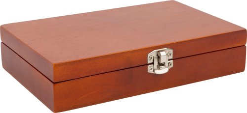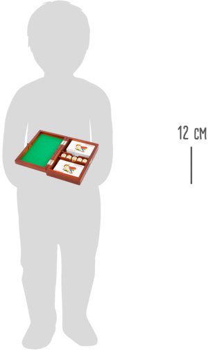 Tento vysoce kvalitní dřevěný box je jako malé kasino! Uvnitř najdete balení karet a 5 kostek. Se dvěma balíčky 54 karet lze hrát klasické hry jako skat, mau mau(varianta prší) a doppelkopf(dvojitá hlava). Část boxu v sobě má zelenou látku, která je ideální pro hody kostkou. Zámkem lze box bezpečně zavřít, hra je tedy ideální i na cesty. Hlavní vlastosti: prakticky uzaviratelný boxvhodné na cestymožno hrát skat, mau mau(varianta prší) a doppelkopf(dvojtá hlava)obsahuje 5 kostek