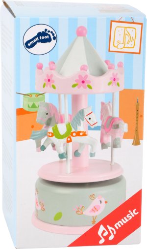 Kdo tady už usnul? Tato klasická dřevěná hudební skříňka uspí každé malé dítě. Kruhový kolotoč s koníky se vesele otáčí s melodií "Where do I begin?". Dekorační barvy a nostalgický design dělají z této hračky na nočním stolku skutečný poutač . Kdo ještě jednou natáhne hudební skříňku? Hlavní vlastnosti: holčičky si tuto hračku jistě zamilují krásný doplněk do herny nebo dětského pokojeodpovídá evropské bezbečnostní normě