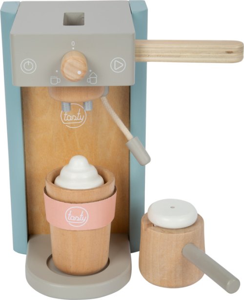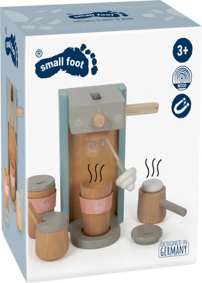 Pro malé baristky a baristky! Tato kompletní dřevěná sada se skládá z dětského kávovaru s 2 kávovými kapslemi, 2 kelímky, cukřenkou s víčkem a lžičkou, také mléčenka s napěněným mlékem. Kávovar nabízí realistickou hru, kávové kapsle zapadnou do přístroje, hotovou kávu můžete nazdobit magnetickou mléčnou pěnou. Kávovar má nenápadné barvy a mnoho viditelného dřeva. Kávové kapsle do kávovaru zapadnou pomocí boční páčky, kuželovitý tvar kelímků zajistí, že kapsle spadne přímo do nich. Magnetický napěňovač vám poskytne mléko do kávy. Napěňovač je vyroben z drátku obaleného v textilu, ohýbá se do všech stran a na konci má magnet, na který můžete připevnit mléčnou pěnu. Tato sada má barevný design kompatibilní s dalšími produkty řady Tasty od Small Foot, například Dřevěnou kuchyňkou LE12216. Hlavní vlastnosti: moderní kávovar s 2 kapslemikelímky-to-go, cukřenkarealistická hra s kapslemi a napěňovačemrobustní dřevodesignově se hodí do dětského i obývacího pokojehodí se k dalším výrobkům z produktové řady Tasty při představivé hře trénuje každodenní a sociální dovednosti