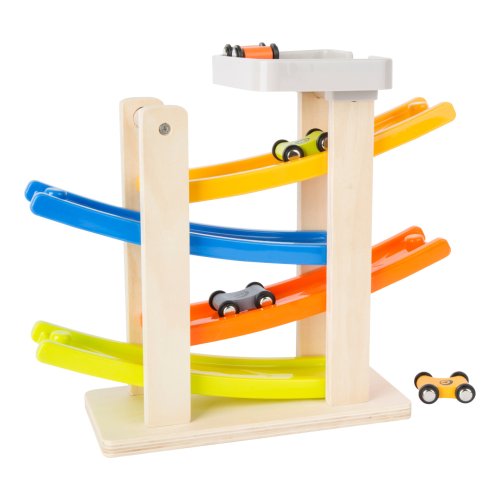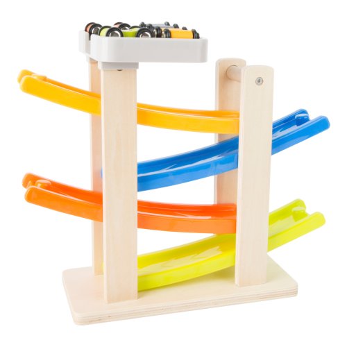 A teď se závod doopravdy rozjíždí! Tato dřevěná závodní auta se řítí po čtyřech rampách a provádějí dechberoucí salta. Dřevěná závodní dráha má stabilní základnu a je dobře vybavená do dětského pokoje. Připravit, nastavit, vyrazit! Hlavní vlastnosti: moderní barevné provedenírozvíjí hravým způsobem motoriku