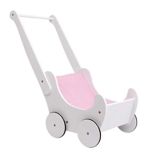 Kdo chce jet na procházku s kočárkem pro panenky? Klasická barevná kombinace v bílé a růžové potěší srdce maminek i panenek. Každá panenka se zde bude cítit pohodlně. Tento kočárek je vyroben ze stabilního, bíle lakovaného dřeva v zaobleném designu. Kola na kovových osách potažena gumou zaručují tichou jízdu. Výška rukojeti je 52 cm. Hlavní vlastnosti: pogumovaná kolečka pro tichou a bezpečnou jízdurozvíjí kreativitu a sociální dovednostiperfektní na dlouhé procházky