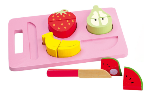 Máš v kuchyni vše připraveno k podávání zdravé svačinky? Ovoce je umyté? Zbývá je už jen nakrájet. Přichystej si prkénko a nůž a můžeš začít - banán, jahoda, hruška a meloun. Součástí balení je prkénko, dřevěný nůž a 4 druhy ovoce, které děti mohou krájet na polovinu. Ovoce drží v celku pomocí suchého zipu. Vhodné pro děti od 3 let.