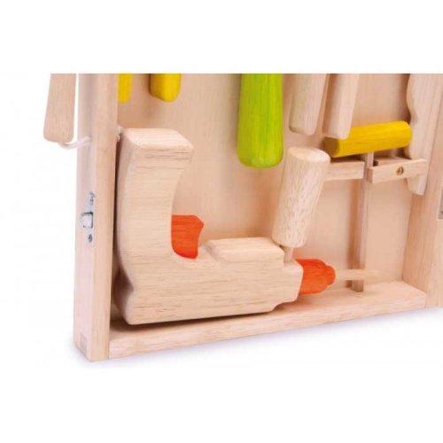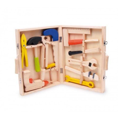 Pozor všichni malí řemeslníci! V tomto vysoce kvalitním dřevěném kufříku najdete 12 dřevěných nástrojů. Nástroje jsou na svém místě zajištěny otočnými pojistkami, vrtačka suchým zipsem. Držadla kufříku jsou vyrobena z textilní šňůry a dřeva pro pohodlné uchopení. S tímto kufříkem na nářadí mohou děti asistovat dospělým při jejich práci a současně se učit ovládat různé ruční nástroje. Kufřík je skvělou pracovní hračkou pro malé řemeslníky. Hlavní vlastnosti: zajištění nářádí proti pohybu pojistkami a suchým zipemobsahuje 12 dřevěných nástrojůvhodný do každé dětské dílny