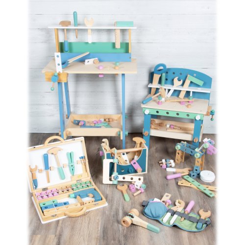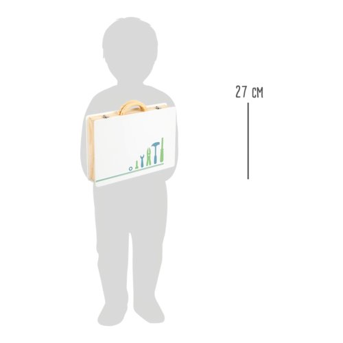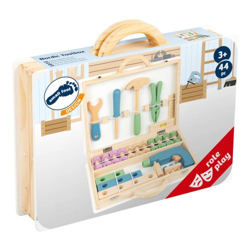 Video je pouze ilustrační, zobrazuje příbuzný produkt. Dejte průchod nadšenému kutilství! Malí řemeslníci i řemeslnice se pomocí kufříku s nářadím stanou nenahraditelnými profesionály. Naleznou v něm všechny nezbytné nástroje, od úhelníku s funkční vodováhou, až po maketu vrtačky s několika magnetickými nástavci. V příslušenství je zahrnuto také množství barevných stavebnicových dílů s robustními šrouby a maticemi. Jejich prostřednictvím mohou děti dát průchod své fantazii, vytvářet rozmanité konstrukce, a tak rozvíjet svou zručnost i další užitečné dovednosti. Pevný a odolný kufřík je uvnitř vybaven gumovými popruhy, díky nimž mohou být všechny součásti vždy bezpečně zajištěny a přehledně uspořádány. Je opatřen spolehlivým kovovým zavíráním a madlem přizpůsobeným ručkám malých šikulů. Souprava je vyrobena z kombinace překližky a masivního dřeva, může proto nabídnout vysokou životnost naplněnou bezpočtem těch nejužitečnějších zlepšováků. Lze vybírat z dvojice různě dekorovaných a barevných provedení, dílenský Miniwob a skandinávský Nordic. Hlavní vlastnosti:úhelník s vodováhou, klíč, šroubovák, kladívko, kleště a vrtačka se 3 nástavci12 plochých stavebnicových dílů různých délek a 11 šroubů s maticemirobustní a odolné dřevěné provedenípraktické a atraktivní balení