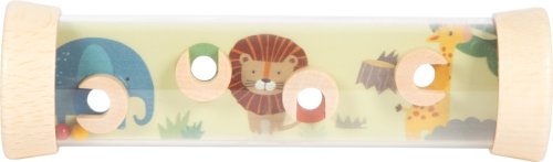 Tento oboustranný labyrint zaujme nejen děti ale i dospělé. Není to jen zábavná hra, ale také chrastítko. Kuličkový labyrint v robustní průhledné trubici rozvíjí motorické dovednosti dětí. A nebude to jednoduché umístit zároveň všechny 4 barevné dřevěné kuličky, které se uvnitř kutálejí, do otvorů. Na obou stranách labyrintu se děti setkají s divokými zvířátky, jako jsou krokodýl, zebra, lev, žirafa a další. Barevné provedení v jemných barvách v kombinaci se vzhledem přírodního dřeva je pro děti atraktivní a stimuluje jejich představivost. Velikost labyrintu je vhodná pro dětské ručičky. Trénuje obratnost, soustředění a trpělivost a zabaví děti nejen doma ale i na cestách. Je také vhodný jako dárek. Hlavní vlastnosti: oboustranný labyrint se 4 barevnými kuličkami a chrastítko v jednomvzhled přírodního dřeva s příjemnými barvami s motivem divokých zvířatstimuluje představivosttrénuje obratnost, soustředění a trpělivostvhodné i na cesty nebo jako dárek