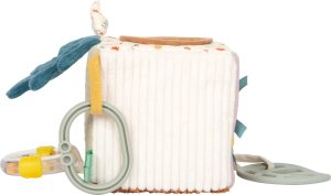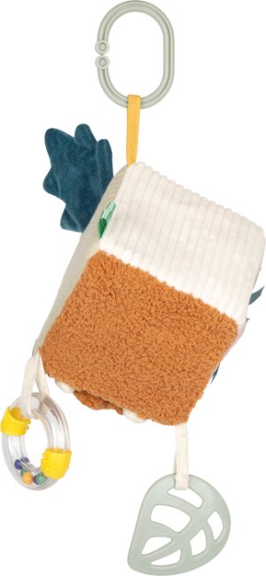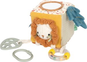 Dotýkej se, poslouchej, objevuj!Tato měkká hrací kostka je všestrannou hračkou pro miminka, která nabízí spoustu podnětů ke hře i objevování. Šusticí prvky, zabudovaný zvoneček, chrastítko i kousátko vytvářejí rozmanité zvuky a hravou formou podporují raný vývoj dítěte. Různorodé textury látek stimulují hmat, zatímco uchopování, mačkání a otáčení jednotlivých stran kostky přirozeně rozvíjí jemnou motoriku. Díky praktickému poutku lze kostku snadno připevnit na kočárek, autosedačku nebo hrazdičku, takže je vždy po ruce. Kompaktní a měkce polstrovaný tvar činí kostku bezpečnou a příjemnou na mazlení i pro ty nejmenší. Veselý motiv lvíčka, roztomilý design a harmonické barvy z ní dělají oblíbenou hračku každého miminka. Skvěle se hodí jako doplněk k dalším produktům z kolekce Little Lion a je ideálním dárkem k narození dítěte nebo ke křtu. Hlavní vlastnosti: multifunkční látková hrací kostka s veselým motivem lvíčka každá strana nabízí jiné prvky – např. zvoneček, chrastítko nebo kousátko bezpečná pro malé dětské ručičky podporuje smysly – především sluch, hmat a úchop rozvíjí jemnou motoriku hravou formou měkké a příjemné provedení ideální na mazlení praktické poutko pro snadné připevnění na kočárek, autosedačku apod. vhodná od narození