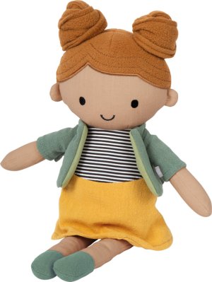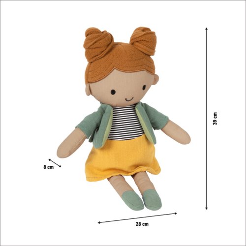 Rozkošná látková panenka Mája je okouzlující každodenní společnicí pro malé rodiče panenek. Hebká, mazlivá a vždy připravená nabídnout blízkost, útěchu i prostor pro nápaditou hru. Díky dětem přizpůsobené velikosti, přátelskému výrazu, dětskému účesu a odnímatelné bundě přímo zve ke hraní rolí. Ať už doma nebo na cestách, Mája spojuje mazlivost plyšové hračky s herní hodnotou klasické panenky a hravě podporuje kreativitu i empatii.Měkké panenky nejsou jen obyčejné hračky - jsou posluchačkami, kamarádkami na hraní i utěšitelkami v jednom. Děti tak mohou napodobovat každodenní situace, vyjadřovat emoce a rozvíjet sociální dovednosti.Mája má na sobě žlutou sukni, pruhovaný top a odnímatelnou bundu, kterou lze snadno oblékat a svlékat - ideální pro podporu jemné motoriky i samostatnosti. Panenku lze prát v ruce, zachovává si tvar i hygienu a je připravena na nespočet hodin hraní plných fantazie a blízkosti. Hlavní vlastnosti: měkká látková panenka se žlutou sukní, pruhovaným topem a odnímatelnou bundouideální velikost pro malé dětské ručičkyrozvíjí jemnou motoriku, představivost a kreativní hraníručně pratelné - snadná údržba a vysoká odolnostvhodné od narození