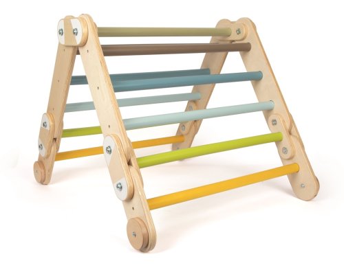 Lezecký trojúhelník a žebřiny 2 v 1 vynikají svou flexibilní konstrukcí. Lezecký trojúhelník volně stojící na zemi může sloužit jako zábavná prolézačka, zakrytý dekou jako skrýš či domeček. Pokud nemáte dostatek místa, je možné jej rozložit a pomocí 4 držáků (které jsou součástí balení) upevnit na zeď a vytvořit tak žebřiny s 11 tyčemi vhodné i pro starší děti. Děti mohou rozvíjet své motorické dovednosti, rovnováhu a koordinaci pohybů. Žebřiny lze také využít k pohybové terapii. Skvěle doplní každý pokoj nebo herní koutek a lze je kombinovat s dalšími produkty řady Adventure. Výrobek vyžaduje montáž, dodáváno s detailním návodem k sestavení. Hlavní vlastnosti: multifunkční použitípro mladší i starší dětiodolné dřevěné provedenínosnost 50 kg