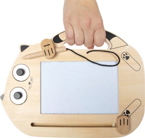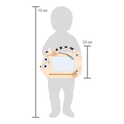 Kreativní zábava pro malé umělkyně a umělce! Magnetická kreslící tabulka ve tvaru kočky je ideální pro děti, které milují kreslení. Pomocí pera lze znovu a znovu vytvářet nové obrázky. Dvě razítka s motivy kočičích očí a kočičí hlavy nabízejí další možnosti vytváření jedinečných uměleckých děl. Když se pero nepoužívá, lze jej bezpečně upnout pod kočičí tlapku, a díky tomu, že je k tabulce připevněno šňůrkou, se neztratí. Když je mistrovské dílo dokončeno nebo chcete vytvořit něco nového, lze obraz jednoduše smazat pomocí posuvníku – takže je vše během chvilky připraveno pro další tvorbu! Díky integrovanému držadlu pro přenášení a kompaktním rozměrům lze tabulku vzít kamkoli. Užijte si kreativní zábavu, která nekončí ani na cestách! Hlavní vlastnosti: s dřevěným perem a 2 razítkypero na šňůrce k tabulce přichyceno tlapkounekonečné kreslení s magickou gumous držadlem pro přenášenívyrobeno z vysoce kvalitního dřevavhodné i na cesty