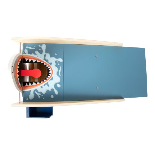 Vyšlete míček po obří vlně do žraločí tlamy ve vzrušující minigolfové hře! Na své si při ní přijdou fanoušci sportu i přírody. Pokud hráč míčkem trefí žraločí tlamu, hrozivé čelisti sklapnou a on efektně skóruje. Bok atrakce je vybaven otvorem, kterým jsou spolknuté míčky vraceny zpět do hry. Díky sadě holí a míčků snadno zabaví skupinku dětí, a to i v pokoji během deštivých dní. Všechny součásti jsou vyrobeny z pevné a odolné kombinace překližky a masivního dřeva. Hlavní vlastnosti:jamka s překážkou, 2 hole a 4 míčkyefektní atrakce vybízející k pohybuodolné dřevěné provedení