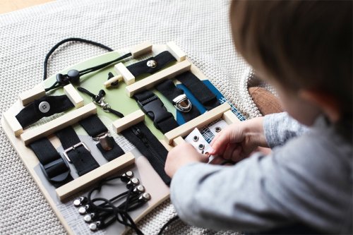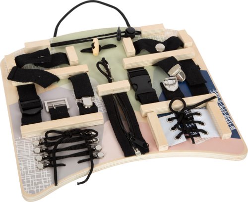 Od přepínacích knoflíků se smyčkami a přezkou na opasek až po díly na suchý či obyčejný zip... Hrací deska v moderních trendových barvách představuje širokou škálu možných aktivit na podporu rozvoje jemné motoriky. Její ergonomický tvar umožňuje pohodlnou hru před dítětem nebo na jeho klíně. Díky praktickému úchytu je možno desku zavěsit. Nabízí spoustu spojovacích prvků a aktivit, jenž děti znají z každodenního života. Při otevírání, zavírání či navlékání si naši malí objevitelé procvičují uchopovací schopnosti a koordinaci ruka-oko. Hlavní vlastnosti: podporuje zručnost a smyslové dovednostinabízí řadu různých aktivit určených k zapojení motoriky
