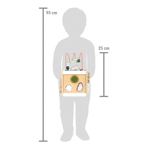 Motorická zábava s polárním králíkem, ledním medvědem, tuleňem a všemi jejich přáteli. Tato motorická kostka je vyrobená ze 100% certifikovaného dřeva FSC®. Nabízí toho spoustu k prozkoumání na svých pěti hratelných stranách. Například dvě korálková bludiště, vkládání tvarů, posuvné bludiště, točící se destičky nebo ozubená kolečka. Poskytuje tak dětem dlouhotrvající zábavu a rozmanité příležitosti k učení. Tuleň, mrož, lední medvěd a další arktická zvířata doprovázejí malé průzkumníky na každé straně kostky a zábavnou formou vzbuzují zvědavost. Motorická kostka má odnímatelné víko, takže lze uložit dovnitř kostky zvířátka nebo tvary, které dítě zrovna nepoužívá .Otáčení, vkládání, posouvání, točení, zkoumání inspiruje fantazii, ale také trénuje zručnost, jemnou motoriku a rozpoznávání barev a tvarů a zároveň učí principu příčiny a následku. Díky svým moderním barvám, vysokému množství dřevěného materiálu a arktickým vzorům je tato kostka skutečným poutačem v dětském pokoji. Má zaoblené hrany pro příjemný haptický zážitek. Hlavní vlastnosti: rozvíjí motoriku, senzorické funkce, poznávání barev a tvarů100% FSC® dřevomoderní originální designzaoblené hrany Značka a certifikát FSC® (Forest Stewardship Council) zaručuje, že dřevo, ze kterého byl produkt vyroben, nebylo vytěženo nelegálně a pochází z lesů obhospodařovaných šetrným či přírodě blízkým způsobem, ve kterém jsou dodržovány přísné environmentální a sociální požadavky. Značka FSC® na výrobku znamená, že svým nákupem pomáháte chránit lesy a podporujete šetrné, odpovědné či přírodě blízké hospodaření, díky kterému jsou naše lesy stabilnější, zdravější, mají přirozenou druhovou skladbu a lépe odolávají negativním následkům klimatických změn.